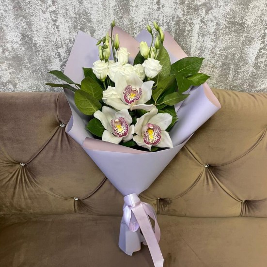 Букет из орхидей и эустомы