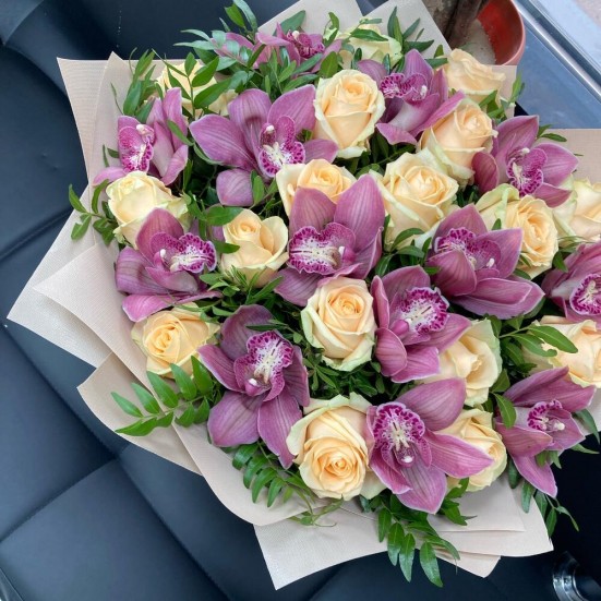 Букет с орхидеями и розами