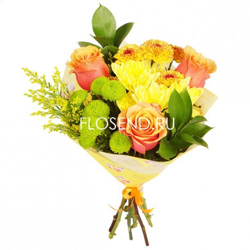 Букет из роз и хризантем и зелени